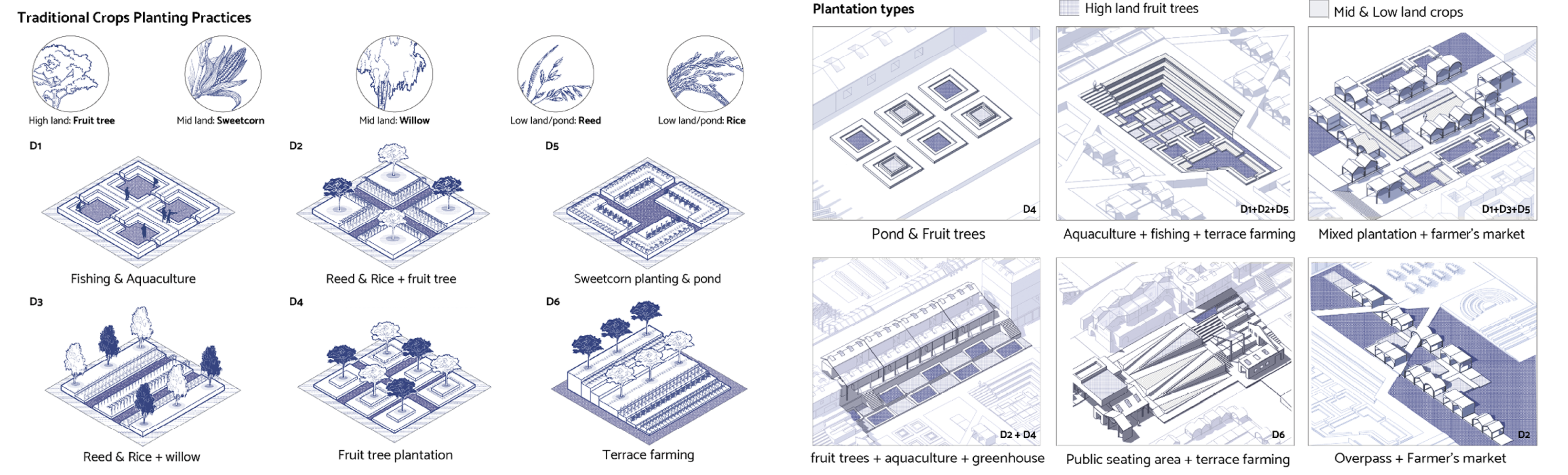 By studying the method of planting different crops according to the height difference in Tangpu Polder Field of Taihu Lake, urban farm is introduced into the texture of the ancient city as a catalyst to recover traditional crop planting practices. The polder fields are divided into three different height zones suitable for growing various crops, including fruit trees, corn, willows, rice, and reeds. The adjacent water bodies are utilized for fishing and aquaculture. Six different modules combining crops and spatial design are designed to meet the residents' agricultural needs within the site.