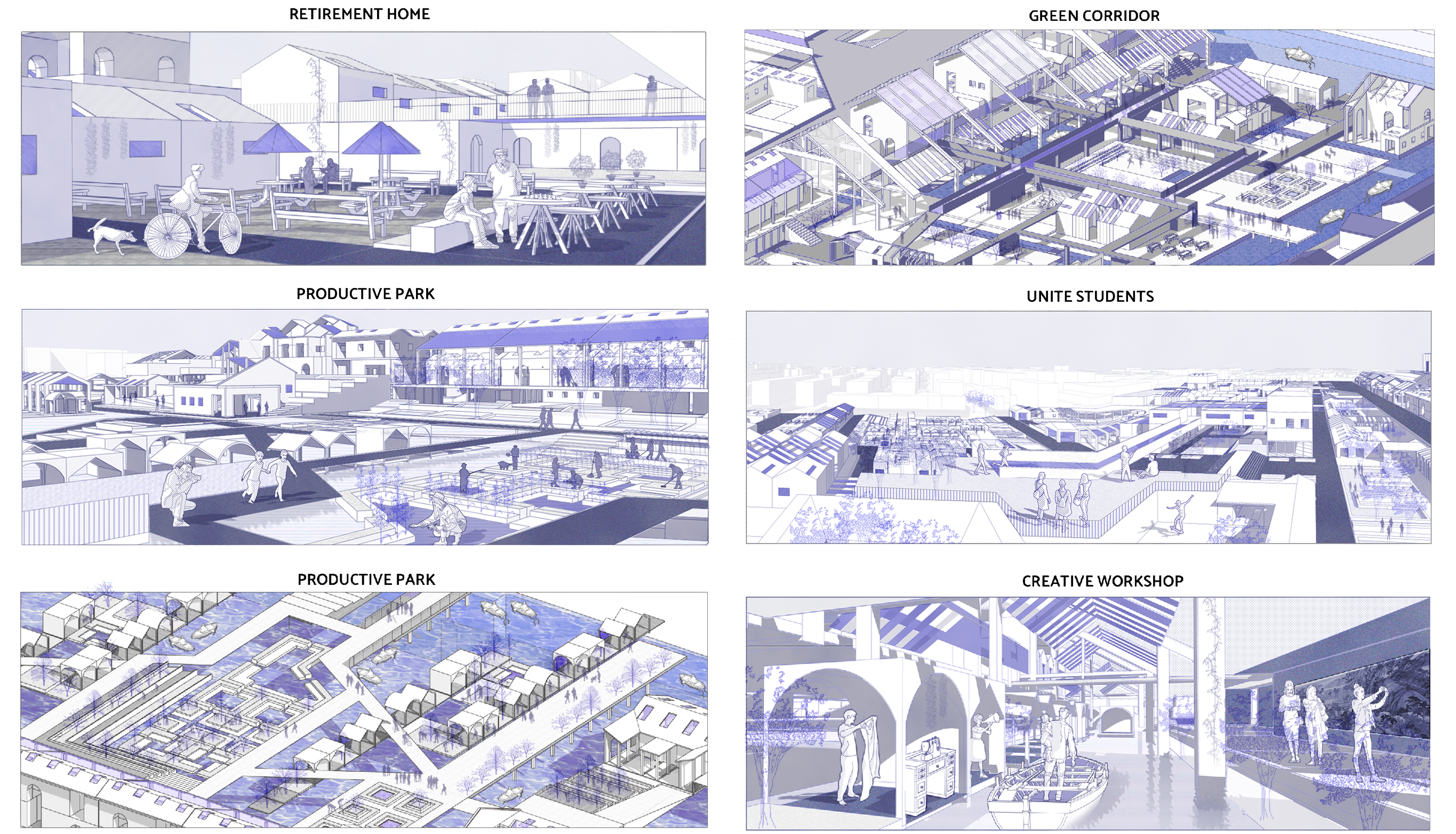 Though detailed exploration of the individual clusters, my design incorporates considerations for human activities and overlaying design interventions with the existing community, ancient city walls, physical lines of sight, and spatial relationships. The seven thematic clusters demonstrate the transition from a community center to a vibrant tourist destination, accommodating the diverse spatial needs of various social groups and promoting social mixing. This design proposal aims to create an inclusive, functional, and visually engaging urban environment that reflects the unique characteristics of Suzhou.