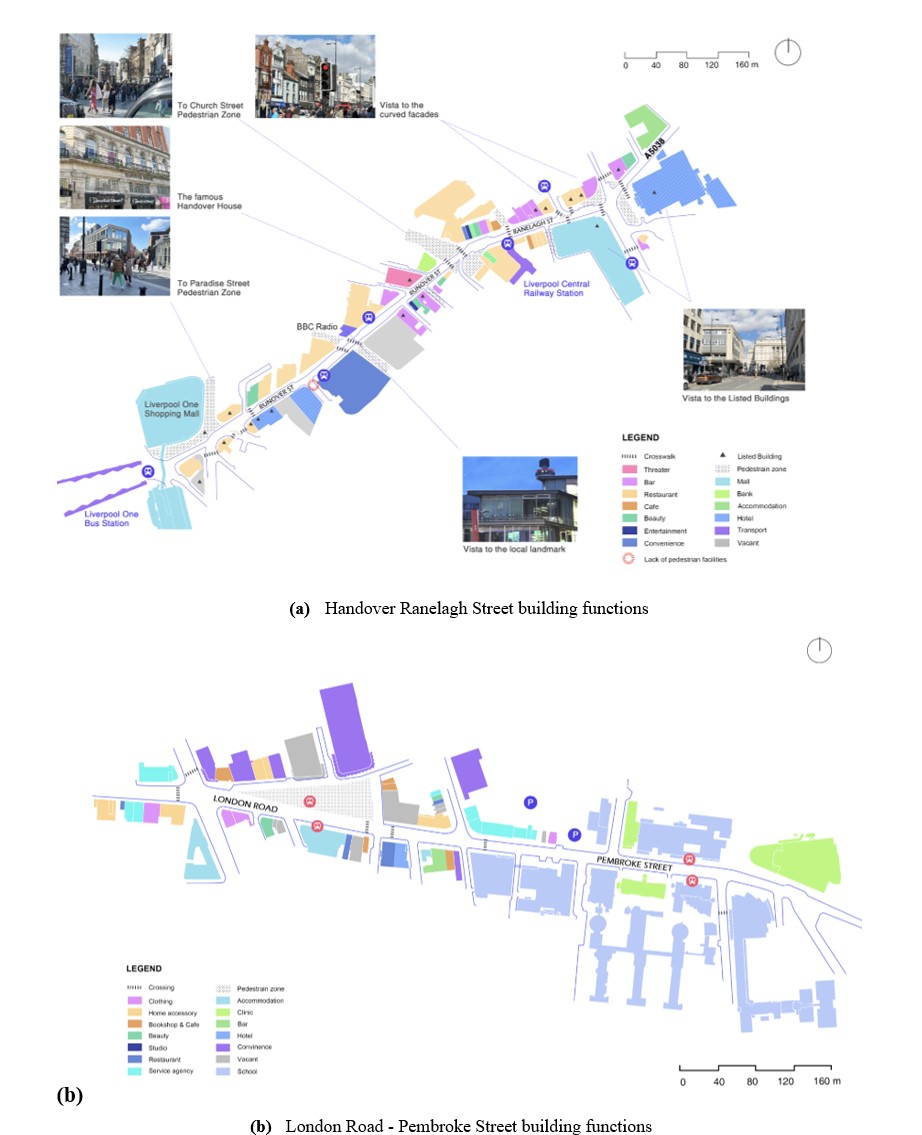 London Road-Pembroke Place runs through the area of Knowledge Quarter, serving as a hub for public transport with multiple bus routes providing mobility from the edge of the city centre to the suburb of Kensington. With the well-known Pembroke Dock adding to its historical significance, the street is home to several university buildings, hospitals, and research agencies with institutional significance. It can be inferred from Figure 4.12 and the UVI map (Figure 4.3a) that: