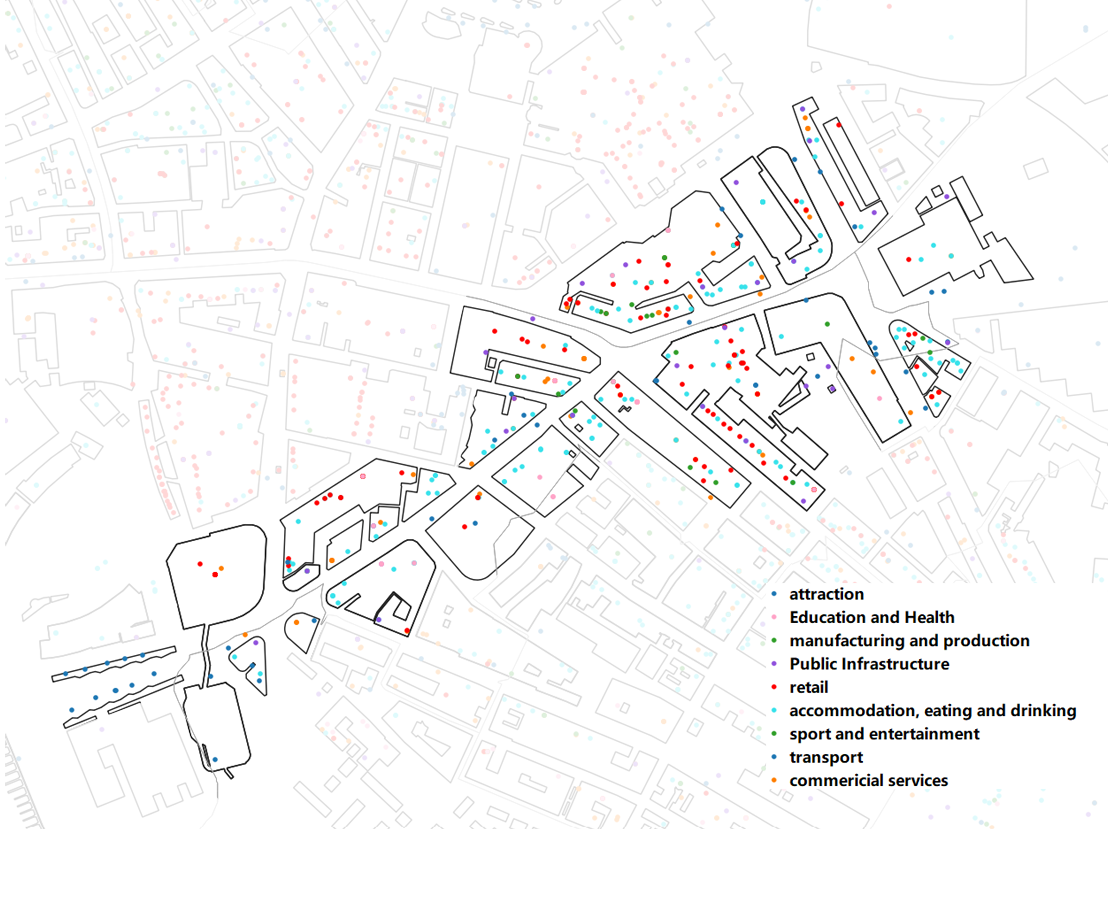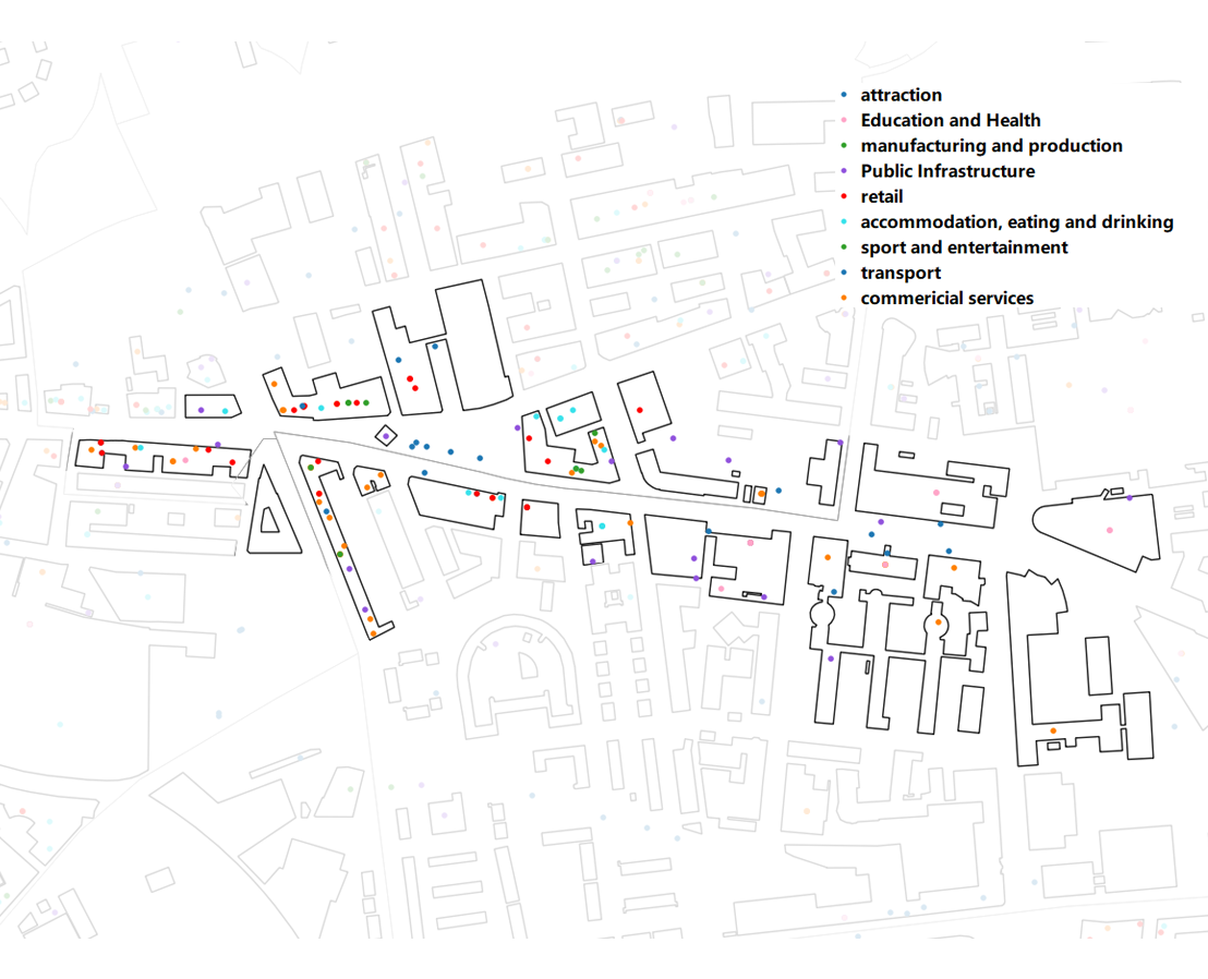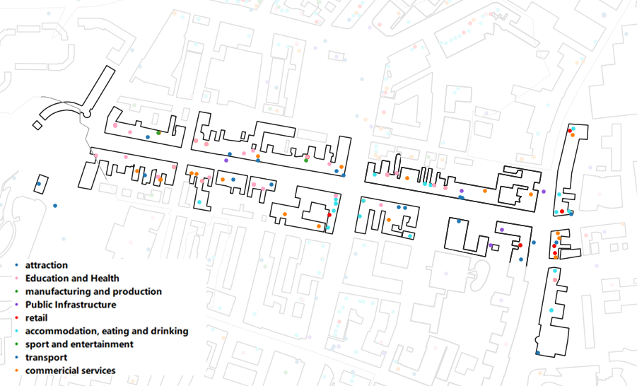 However, in these studies, POIs serve only as one of the input data elements constituting the multi-dimension, multi-source, and multi-variable frameworks. Limited attention has been devoted to investigating the performance, applications, and implications of POI data, alongside the associated research methods (Psyllidis et al., 2022). In the absence of empirical evidence regarding the efficacy of utilising POI data as a proxy for measuring urban vitality, POI research could potentially produce inaccurate or misleading recommendations on policymaking and urban design. Furthermore, British policy guidelines such as the National Planning Policy Framework (NPPF, 2021) and National Design Guide (2021) align UK cities with the overarching principles of sustainable urbanism. Nevertheless, the analysis of urban vitality appears to concentrate on Chinese high-density metropolises, leaving European cities relatively unexplored in this regard.