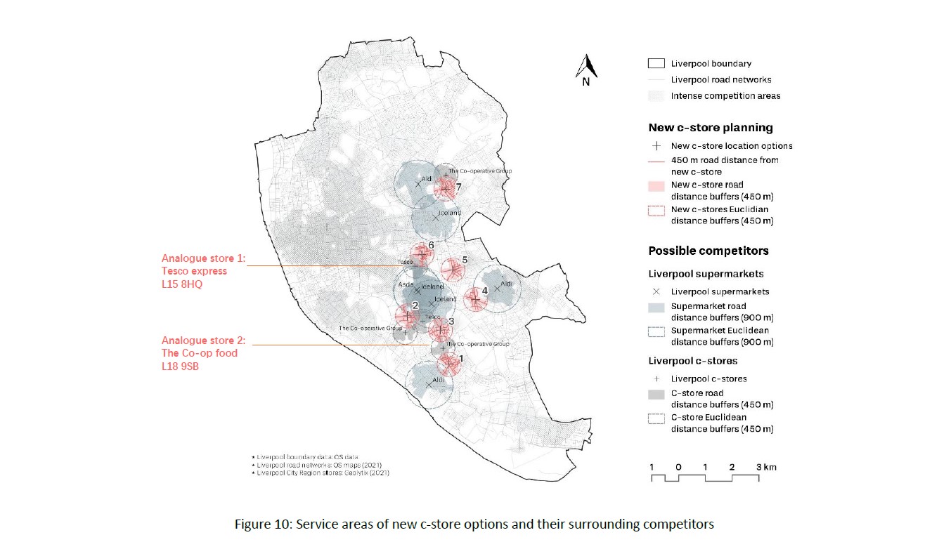 Traditional high-street retail faces crippling challenges due to consumer behaviour changes in the digital era (Great British High Street, 2020). However, few studies have prioritised demand-side indicators in shaping store locations, including consumer propensity for online shopping during the COVID (Pantano et al., 2020). This report attempts to apply GIS analysis to demand and supply appraisals, precluding inappropriate locations and selecting the optimal option for a new convenience store in Liverpool with click-and-collect facilities.